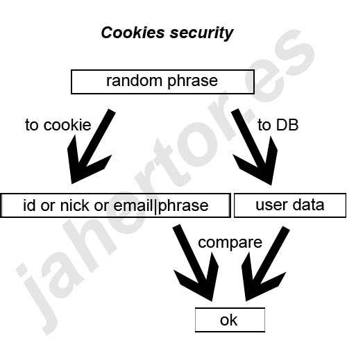 - Agregar la frase a la cookie, de modo que quedaría: «email|frase», ya que al tener la frase no necesitamos comprobar la contraseña cada vez.